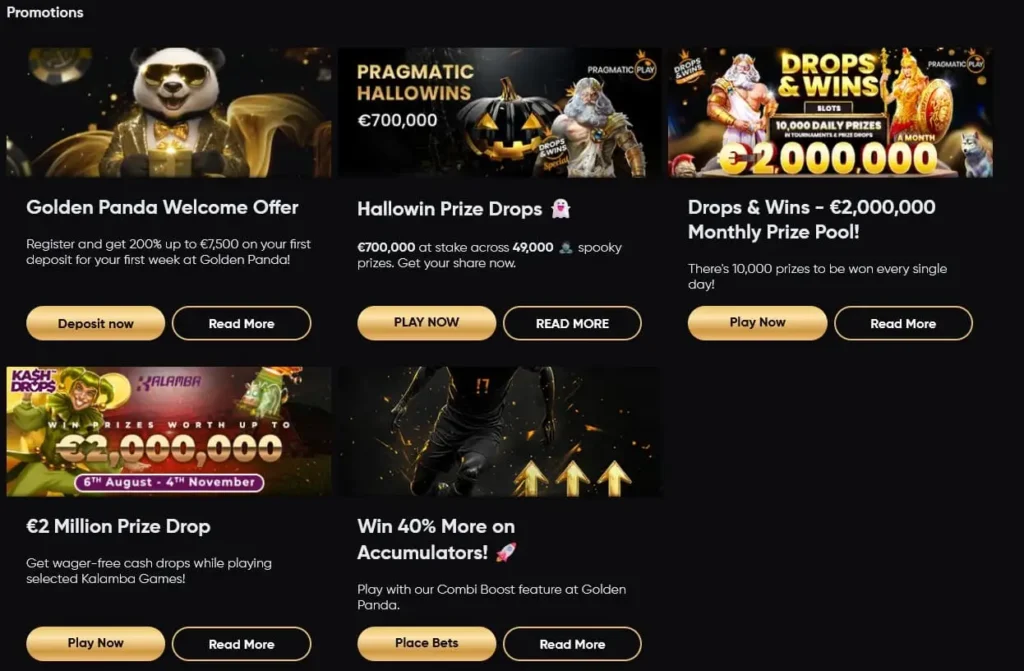 Diese Angebote machen Golden Panda einzigartig. Studien zeigen: Boni steigern die Bindung um 26 %. Wähle, was zu dir passt. Im Vergleich zu Mitbewerbern hält Golden Panda die Umsatzbedingungen fair, was laut unabhängigen Bewertungen für hohe Zufriedenheit sorgt.