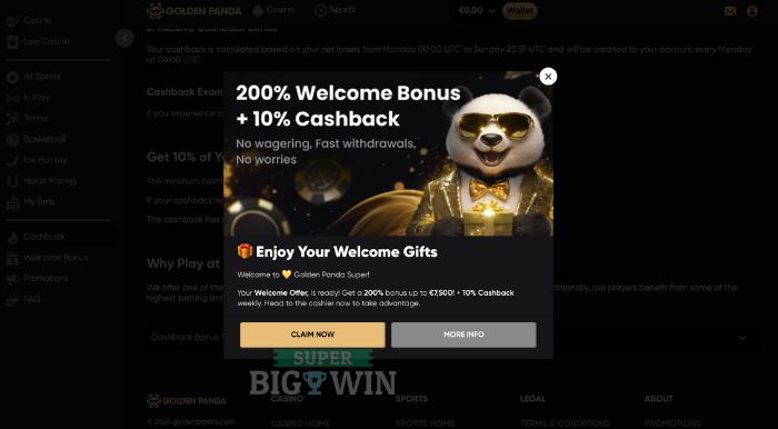 Möchtest du kostenlos im Golden Panda Casino spielen? Die Golden Panda Casino no deposit bonus gibt dir den perfekten Einstieg ohne eigene Einzahlung. Clevere Aktionen ziehen erfahrene Spieler an. Golden Panda vereint Nervenkitzel und Sicherheit mit einer Curaçao-Lizenz. Tauche ein in die Welt der Boni und starte noch heute. Was macht dieses Casino so besonders? Es geht nicht nur um die Golden Panda bonus, sondern auch um die intuitive Plattform und eine breite Auswahl an Spielen, die dich stundenlang fesseln. In einem Meer aus Online-Casinos sticht Golden Panda heraus, mit Fokus auf Spieler aus der Schweiz und Zahlungsoptionen, die perfekt zu lokalen Bedürfnissen passen.