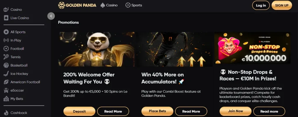Account registration follows standard industry protocol. Players complete a signup form with personal details, verify email addresses, and submit identification documents as part of KYC requirements. The Golden Panda promo code system doesn’t appear to require manual coupon entry for the standard welcome package—the 200% match activates automatically on first deposit.