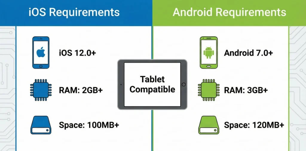 | iOS | 12.0+ | 2 GB | 100 MB |
